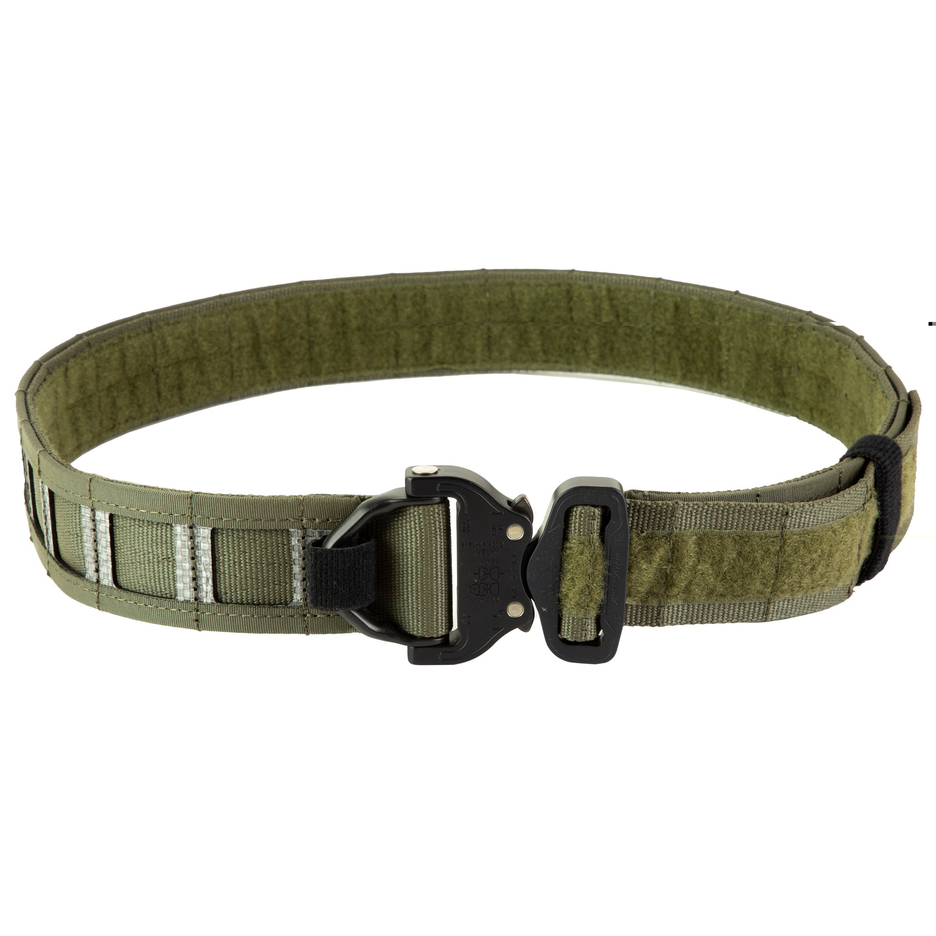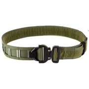 The GBRS Group Assaulter Belt utilizes a 2 belt system to create a lightweight, flexible yet rigid and stable platform to attach equipment, holsters, and accessories. This is done by using Type 13, 1-23/32" belt webbing (7000 lbs. tensile strength) as the base, with a field of PALS webbing, laser cut from a semi-rigid woven thermo-polymer. This ensures that your equipment is always secured to something rigid while allowing the belt to remain lightweight and comfortable. To round it off, GBRS double ,W, stitches the webbing to a load rated, 1.75" Austrialpin Cobra buckle with a D-ring for attaching helo lanyards and other equipment. The outer belt has an inner facing of ,loop, style Velcro, to attach to a low profile ,hook, inner belt. This is done because hooks should never be worn towards the body, especially in such a high-wear area (belt line). The inner belt system consists of a low profile ,hook, inner belt with a single layer of 1.5" scuba webbing. This results in a system that doubles as a non-metallic EDC belt and is a comfortable and convenient way to cover the abrasive hook portion of the inner belt when flipped inside out. The single layer of scuba webbing allows for a rigid surface for IWB holsters to secure firmly.