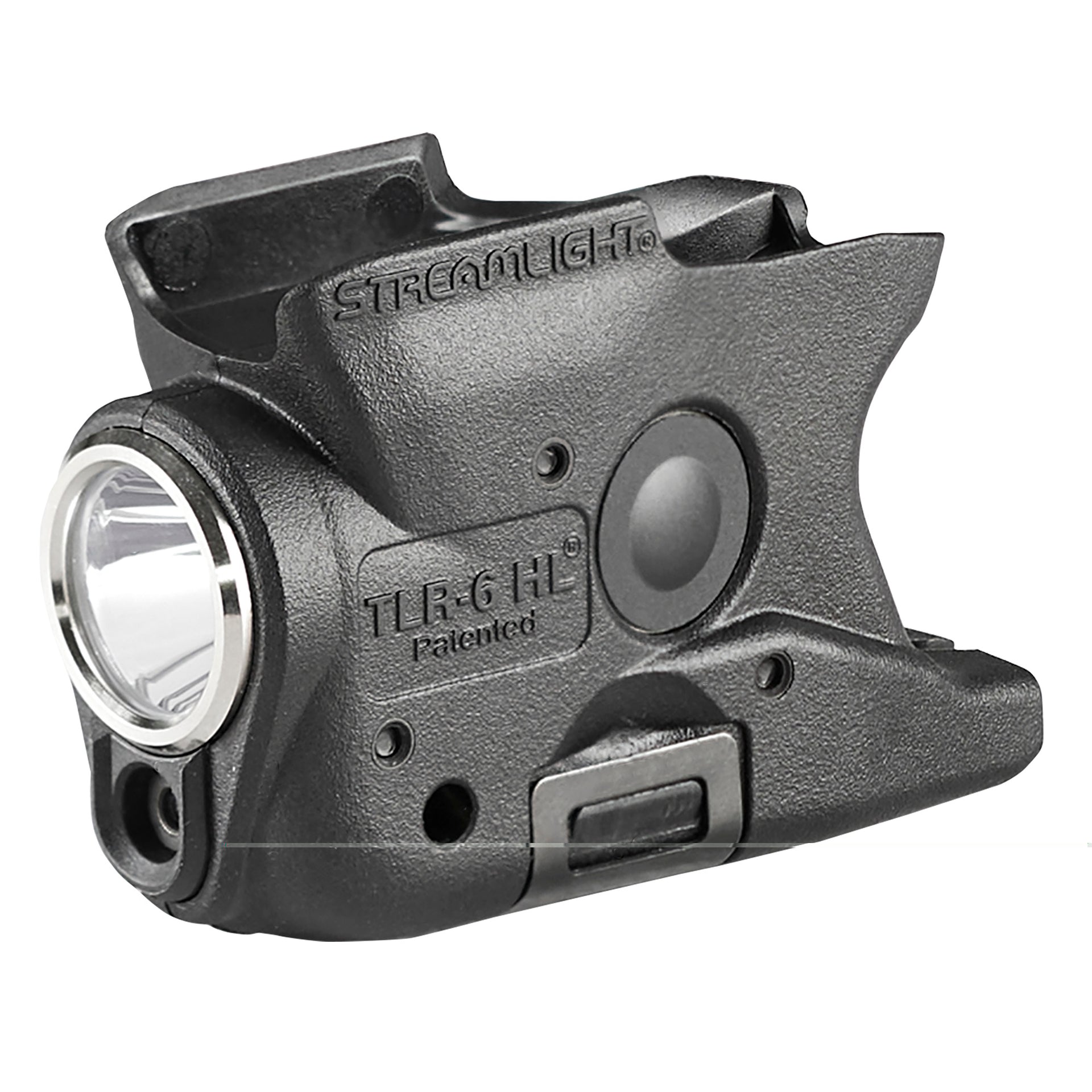 The ultra-compact TLR-6 HL weapon light with a high-power LED and integrated red aiming laser features a rechargeable battery system powering 300 lumens of bright light. A portable charge case conveniently stores and charges your batteries without the need to tether your gun.