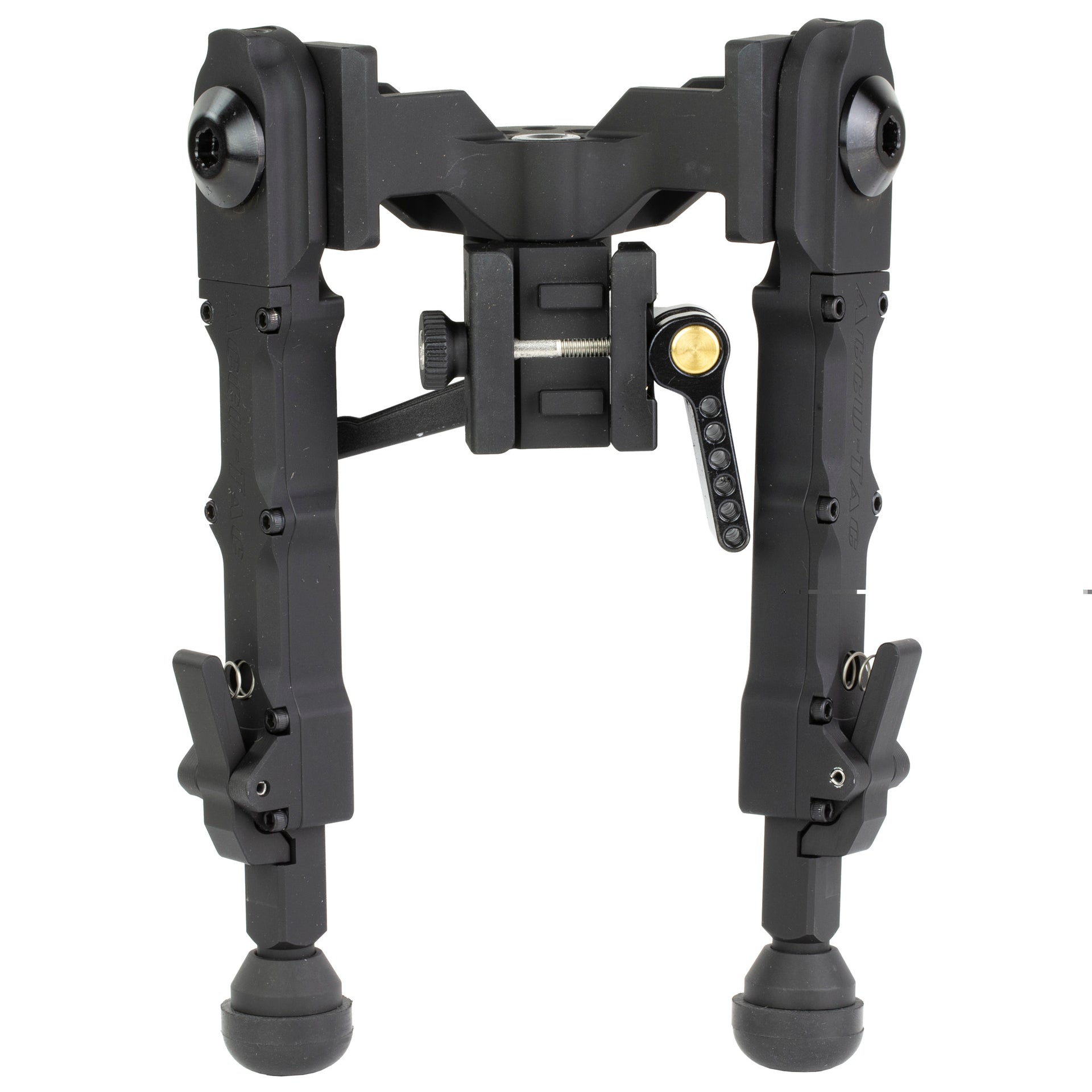 The WB-4 Wide Body bipod was designed to provide desired height and extra stability. This bipod style is ideal for long-range, extreme long-range, bench-rest, and for the airsoft platform. The wide, lowered center allows the rifle to sit between the legs which supports accuracy and helps reduce movement from recoil. This is only a suggested use, this model is not exclusive for these applications. The WB-5 is 100% billet, made from the highest quality aircraft aluminum available. This model has the versatility you want in a bipod with its 4 individual leg positions and 5 notch height options. It also has the ability to cant, which can be locked and secured with the adjustable lever. Their quick detach rail mount is simple, quick, and very secure, it attaches to a 1913 Picatinny rail and mounts in seconds without the need to use extra tools for tightening. To engage or adjust leg position, simply pull the spring-loaded leg downward to move each leg independently. Leg position can be deployed to 90 degree or 45 degree, locking securely into 4 positions. Please keep in mind the cant adjustment lever can be repositioned, DO NOT use a tool to tighten the canting tension.