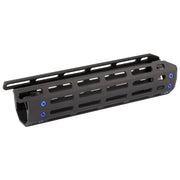 The Benelli M2 compatible MLOK handguard is machined from 6063 aluminum. It is 9.375" in length and weighs in at 8.8 ounces fully assembled. The handguard features 38 full size MLOK attachment slots and 9 additional partial MLOK attachment slots. The handguard ships with the receiver and front barrel mount assembled. The handguard will drop right in and no disassembly of the handguard is required. Please note the rail is offered in either a Mil-Spec hard anodize or Elite Blackout Cerakote.