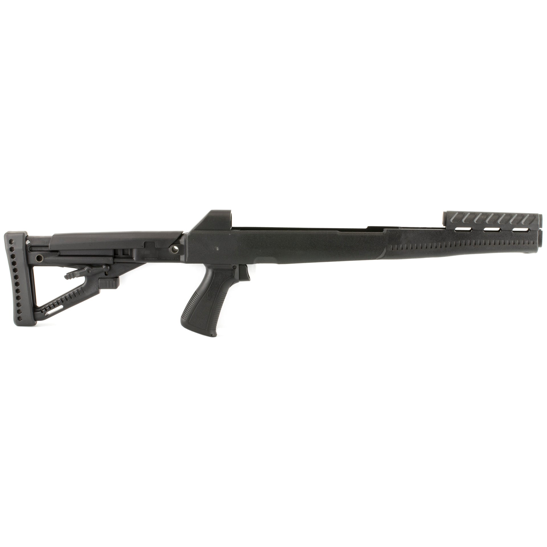 The Archangel OPFOR AASKS conversion stock for the SKS rifle and carbine offers the convenience of a pistol grip stock with an adjustable length of pull and adjustable cheek riser. The forend is aggressively contoured for positive weapon control. An ergonomically correct pistol grip with grooved and textured front and back straps enhance weapon control and reduces fatigue. There is a locking storage compartment in the grip. The four position collapsible stock features a seven position adjustable cheek riser, and a four position length of pull and is equipped with a removable soft rubber recoil pad. Three steel, QD hard points are embedded to accept QD style sling swivels (sling swivels not included). Constructed of Promags legendary high strength, carbon fiber and glass reinforced polymer, the stock is super tough and will withstand a lifetime of hard use. Lifetime warranty. 922(r) Compliant. Made in USA.