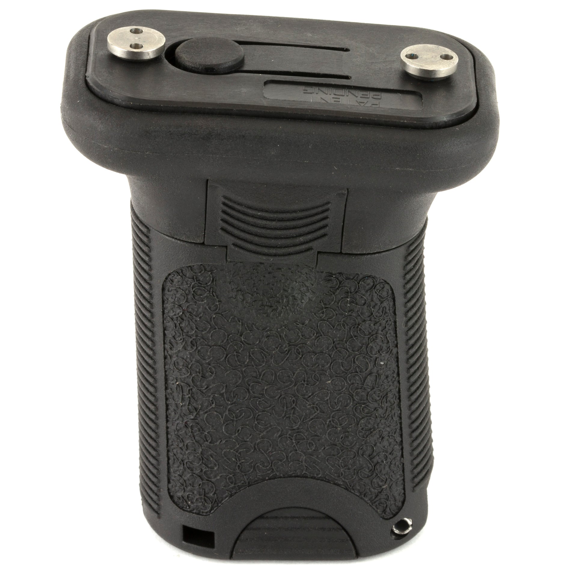 Bravo Companys BCM Gunfighters Vertical Grip (Short) KeyMod version has a low-profile length for increased mobility and decreases snag factor. The forward angle increases the rigidity of the forearm while providing a more natural wrist angle. It can be mounted in reverse angle to increase your control when grabbing the handguard and grip. The flat sides give better yaw control to the shooter during firing and non-firing manipulations and has an aggressive texture with storage inside the grip. It requires three KeyMod attachment hole mounting points. It is made in the USA and manufactured from high quality, impact resistant polymers.