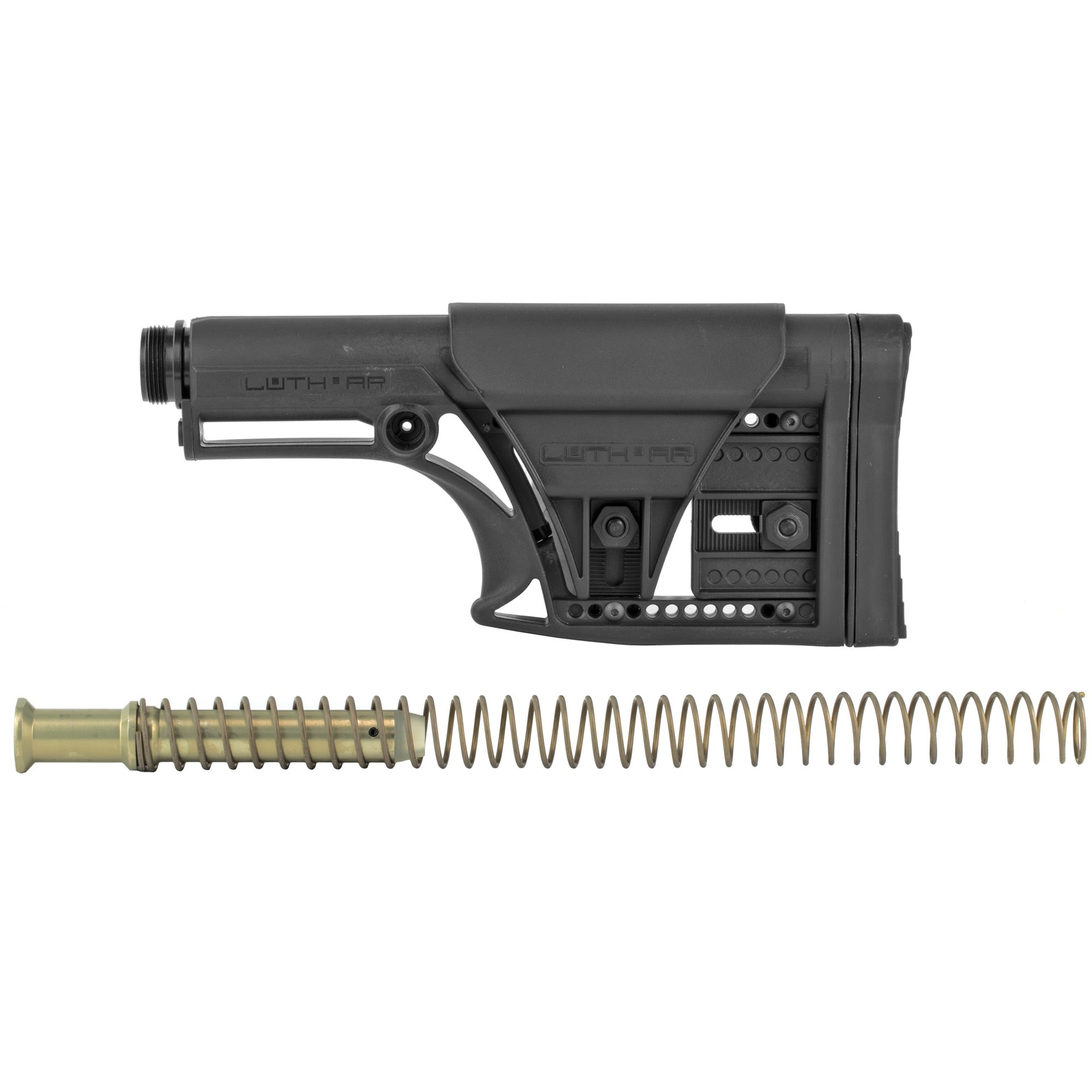 Luth-ARs MBA-1 Rifle Buttstock is designed to mount to an AR-15 or AR-10 Rifle Length A2 Buffer Tube. It is fully ambidextrous and can be comfortably used shooting off either shoulder. The cheek piece comes pre-installed for right handed shooters but can be installed for the left handed shooter. The cheek piece not only moves up and down, it also moves back and forth on the stock, while the stocks length of pull is adjustable via a convenient thumbscrew. This fixed stock fits most .308 AR style rifles. It is a constructed of super strong glass filled nylon and incorporates a receiver end plate in the design. It is easy to replace and quick to install. This Assembly Kit comes with everything needed to install the MBA-1 Stock to a 308/7.62 AR-10 lower receiver, including an A2 Buffer Tube, 308 Rifle Recoil Buffer and Recoil Buffer Spring.