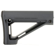 The MOE Fixed Carbine Stock - Mil-Spec Model (Magpul Original Equipment) provides an inexpensive, fixed, non-collapsing stock option for mil-spec size carbine-length buffer tubes. The MOE Fixed Carbine Stock has a slim profile, improved cheek weld, and multiple sling attachment options, and is compatible with ASAP Plates and PRS Extended Rubber Butt-Pad. Installation is non-armorer and does not require the castle nut or lock plate to be removed. Made in U.S.A.