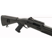 Developed to meet the needs of law enforcement and military operators, the rugged Urbino Tactical stock features a ,tactical, 121/2 inch length of pull (LoP), Santoprene rubber grip, Riser and a variety of flexible sling mounting options. A shorter stock is necessary for use in tactical applications, especially with body armor. The Urbino Tactical stock is durable, easy to shoulder and will not slip. The Urbino Tactical stock is also comfortable, thus reducing operator fatigue, especially during prolonged training and qualification sessions. The Santoprene grip is padded at the rear to reduce recoil impact against the web of the operators hand the field-adjustable cheek riser was developed to provide superior cheek weld when using optics. All Urbino Tactical stocks are made in the USA, and include Benelli style rear sling loops for 11/4 inch sling webbing. In addition, a hole at the lower rear of the stock accepts QD style sling swivels (not included). Urbino Tactical stocks can also be fitted with any of a variety of optional steel pocket sling mounts similar to those offered for Remington telescoping stock adapters. Pocket sling loops, hook loops and push-button sling swivel mounts that fit securely between the Urbino stock and the shotgun receiver.