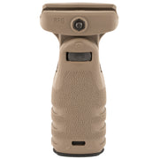 A textured vertical grip that deploys in either a vertical or horizontal position and provides a positive grip surface. Allows the support hand to apply rearward pressure keeping the weapon shouldered, yielding better muzzle control and accuracy.