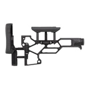 Toolless adjustment of the MDT Skeleton Rifle Stock elevates the comfort and performance of the shooter. Horizontal, vertical and cant adjustment to the cheek riser and buttpad ensures a perfect fit for your shooting position. The Skeleton Rifle Stock is available for fixed interface, as well as MDTs own ESS and ACC (XTN) buttstock interfaces. This XTN interface includes a folding option. The MDT Skeleton Rifle Buttstock was designed to provide the shooter with best-in-class strength and ergonomics, with an emphasis on adjustability and comfort. Length of pull (LOP) can be easily adjusted and fine-tuned with the thumbwheel, and locked in place with thumb screws or set screws (both included). The buttpad can be adjusted up and down as well as canted left or right, to form fit the shoulder pocket of any shooter. Achieving the perfect cheek weld is a breeze, with thumbwheel adjustment as well as side-to-side and cant adjustments, thumb screws or set screws (both included) to lock in place.