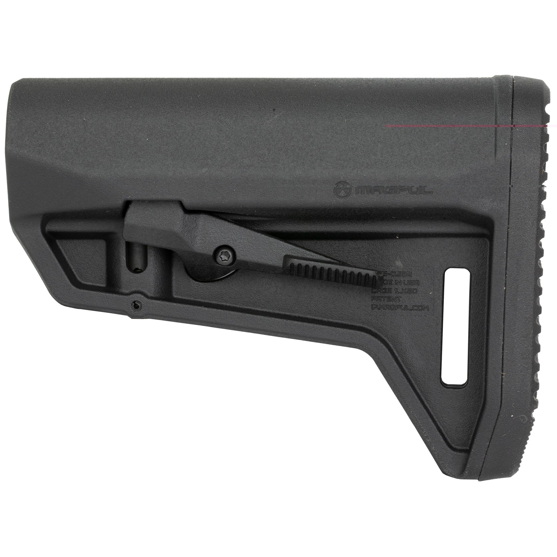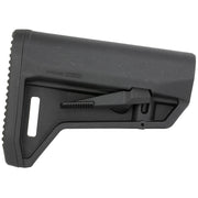 The MOE SL-M Carbine Stock - Mil-Spec is a drop-in replacement buttstock for AR15/M4 Mil-Spec carbine buffer tubes. It was specifically developed for ultra-compact, PDW-style military platform requirements and for users desiring a smaller, lighter stock. Similar to the SL-K, the SL-M features a shorter and slimmer profile that is optimized for PDW-length receiver extensions. With its small, non-slip rubber butt-pad and an angled toe, the SL-M was engineered to support shoulder transitions, even while wearing body armor and modular gear. It includes a unique, ambidextrous release latch that is shielded to prevent accidental deployment and minimizes rattle on the receiver extension without requiring additional locks, levers, or springs. The 1.25" footmans loop accepts an optional M-LOK QD Sling Mount for push-button style QD sling swivels.
