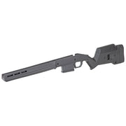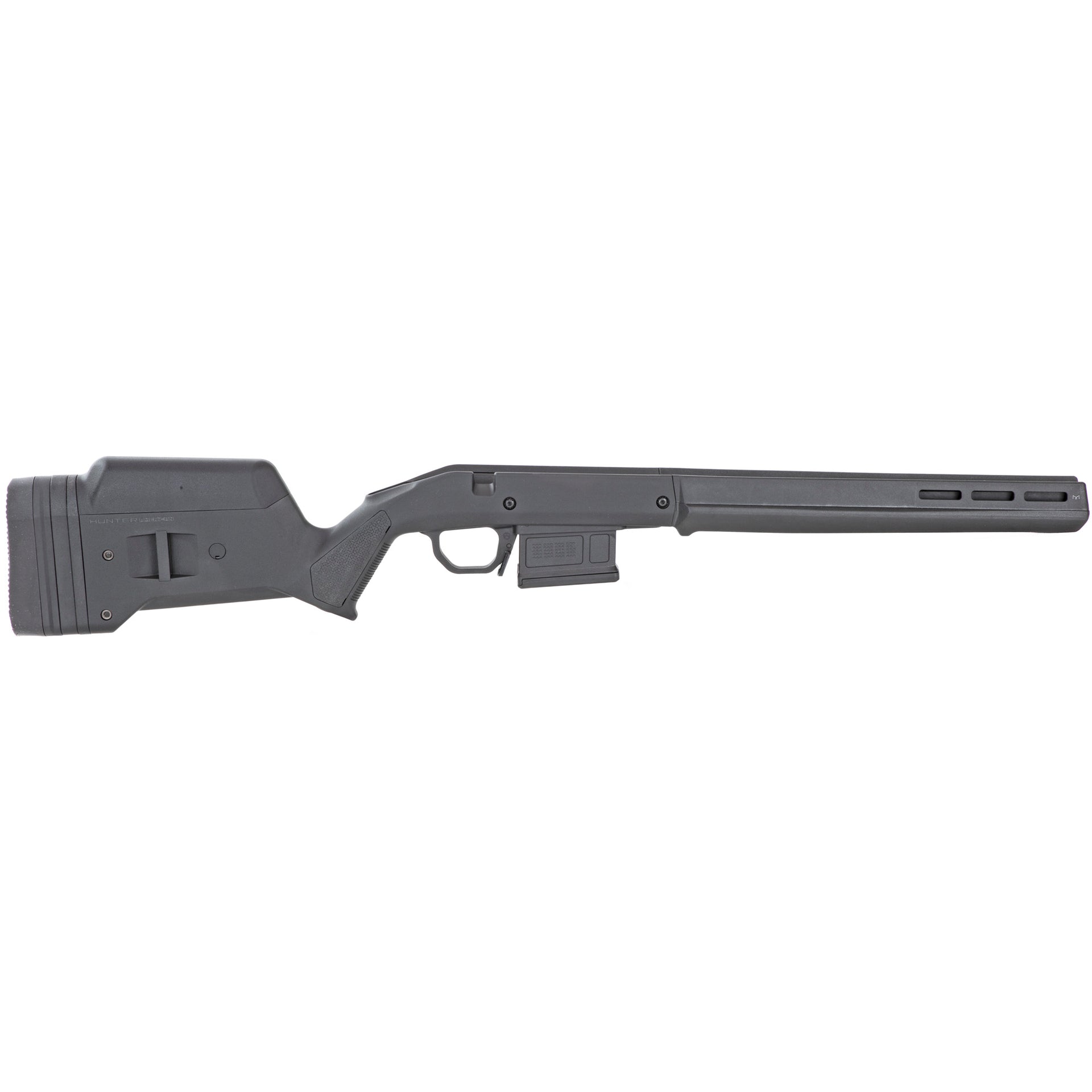 Continuing the Hunter lineage, Magpul introduces the Hunter American stock. Made from reinforced polymer and an anodized aluminum bedding block with steel recoil lugs. The Magpul Hunter American stock offers users a cost-effective replacement featuring a fully adjustable length of pull, comb height, and enhanced ergonomics. Compatible with Ruger American Short Action rifles, this stock requires no bedding and is a true drop-in solution for the end user. This stock is also M-LOK compatible to accept a broad range of accessories. Included is Magpuls Bolt Action Magazine Well and a PMAG 5 7.62 AC which allows the rifle to be used with detachable box magazines without any need for custom inletting.