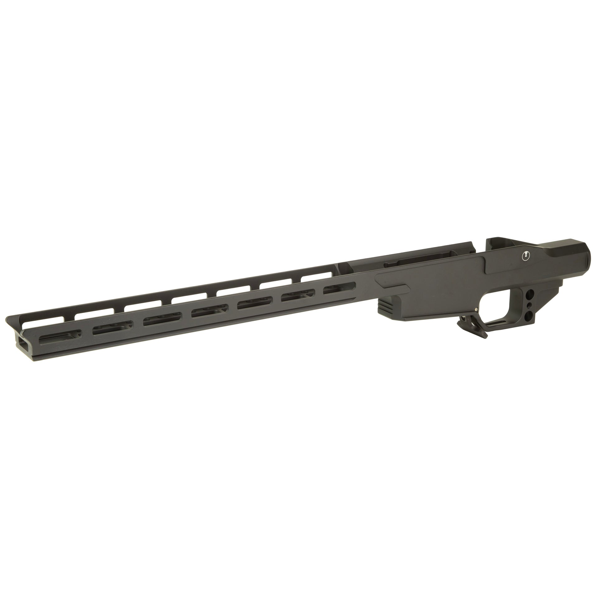 The Ultradyne Chassis is crafted from a solid bar of 6061 T6 Aircraft Aluminum for exceptional strength and durability. The one-piece design weighs between 1.1 and 1.3 pounds, depending on the model. This makes it suitable for both hunting rifles that weigh as little as 6 pounds and long range target rifles that weigh up to 16 pounds. When paired with the Ultradyne Adjustable Butt Stock, it is lighter than most factory stocks yet has the ability to add up to 5 pounds with optional weights.