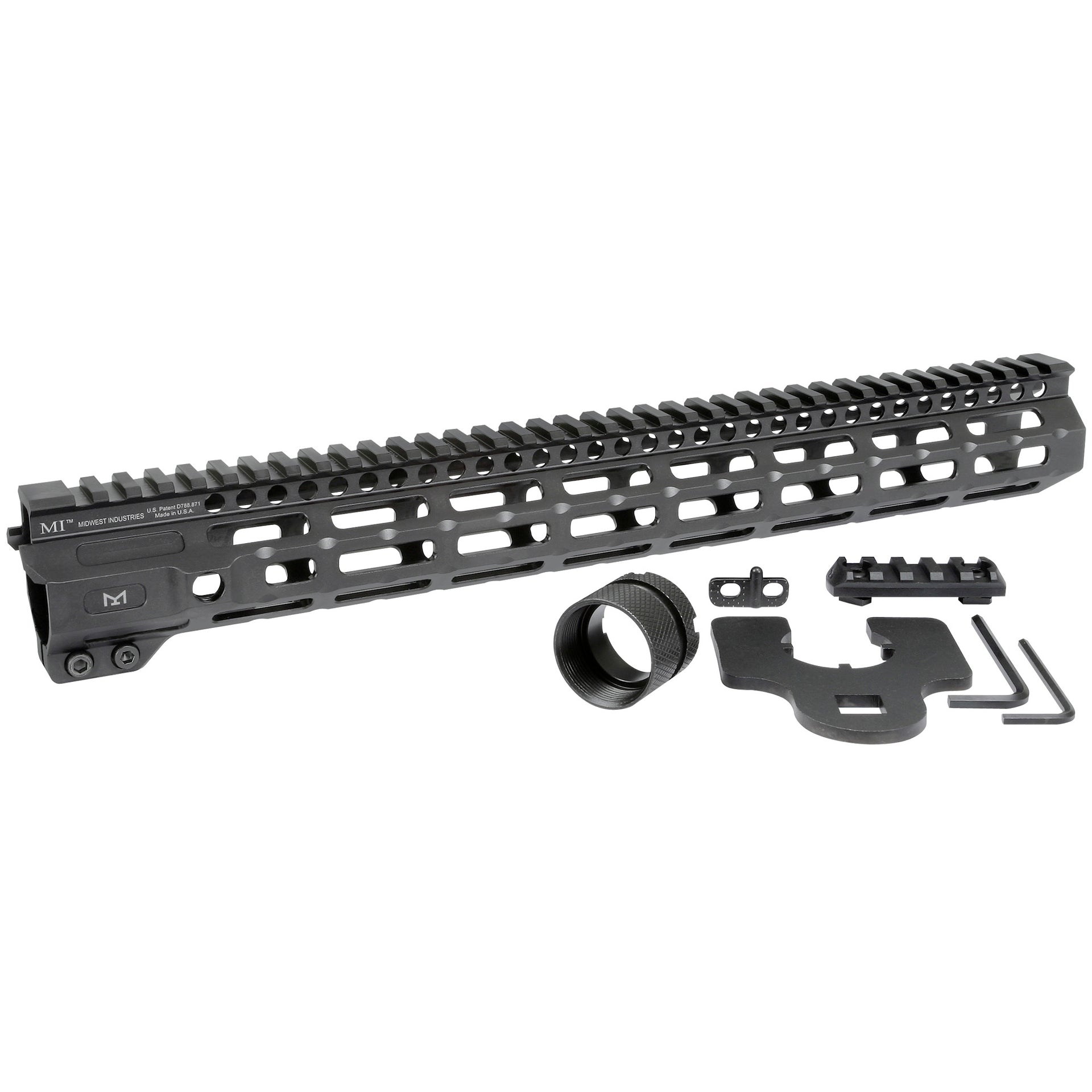 - ,15, SELLCOPY;MWMI-CRM45;,The Midwest Industries Combat Rail Series Handguard is a 1-piece design that features M-LOK accessory mounting slots on 7 flats along its length, a full length Picatinny rail at the 12 oclock position and two QD sling swivel mounting points. This robust design has a slim profile and is machined from rugged 6061 aluminum with a type 3 hard coat anodized finish. Comes with mounting hardware, barrel nut wrench and a 5-slot polymer M-LOK accessory rail. Midwest Industries is a proven leader in the firearm industry. Made in the USA, focusing on the small details to make your rifle platform better.,