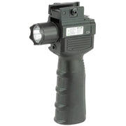This NCSTAR Vertical Forend Grip features and integrated tactical flashlight and green aiming laser, and is compatible with Weaver/Picatinny type rails. Its textured ergonomic grip is made from lightweight glass reinforced nylon, while the upper is hard anodized aluminum for rock solid mounting. Powered by two CR123A lithium batteries (included).