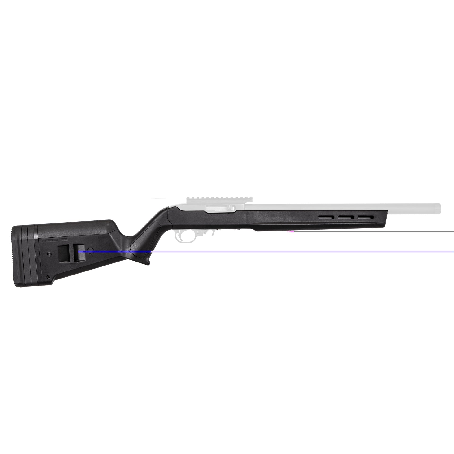 The Magpul Hunter X-22 chassis is an ergonomic, full-featured stock for the ubiquitous Ruger 10/22 rifle. Made from high quality reinforced polymer, the Hunter X-22 features an ergonomic grip, adjustable length of pull and comb height to fit a wide variety of shooters, multiple sling mounting options, a non-slip rubber butt-pad, and M-LOK slots for accessory attachment. The Hunter X-22 fits standard Ruger 10/22 .22 LR pattern rifles with no gunsmithing, and a reversible barrel tray ensures proper fit with factory pencil profile as well as heavy bull barrels. Made in U.S.A.