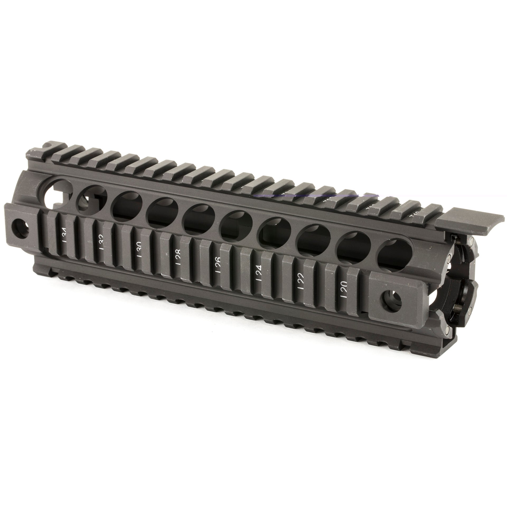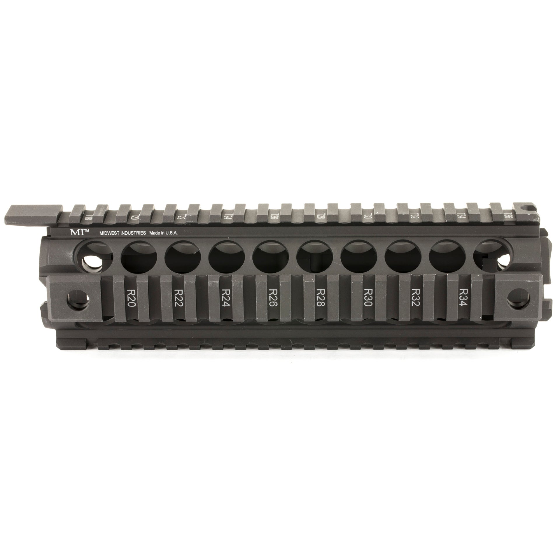 Midwest Industries AR Mid-Length MI Gen2 Two Piece Drop-In-Handguard installs like factory plastic handguards. Midwest Industries is a proven leader in the firearm industry. Made in America" focusing on the small details to make your rifle platform better. The addition of their drop in handguard to your rifle platform creates the rail space you need to add your accessories. It has Gen2 design with four anti-rotation QD sockets for push button swivels. It is constructed from 6061 aluminum hard coat anodized and compatible with most gas piston systems.