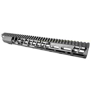 15" Full Top Rail MLOK Handguard (Includes Barrel Nut & Hardware).  Made of 6061-T6 aluminum and anodized black per mil-spec MIL-A-8625F, TYPE III, CLASS 2. Full top rail + MLOK slots on 7 other sides. Includes anti-rotation tabs. Hand guard weighs 10.0 ounces. Barrel nut and hardware weigh an additional 2.6 ounces.