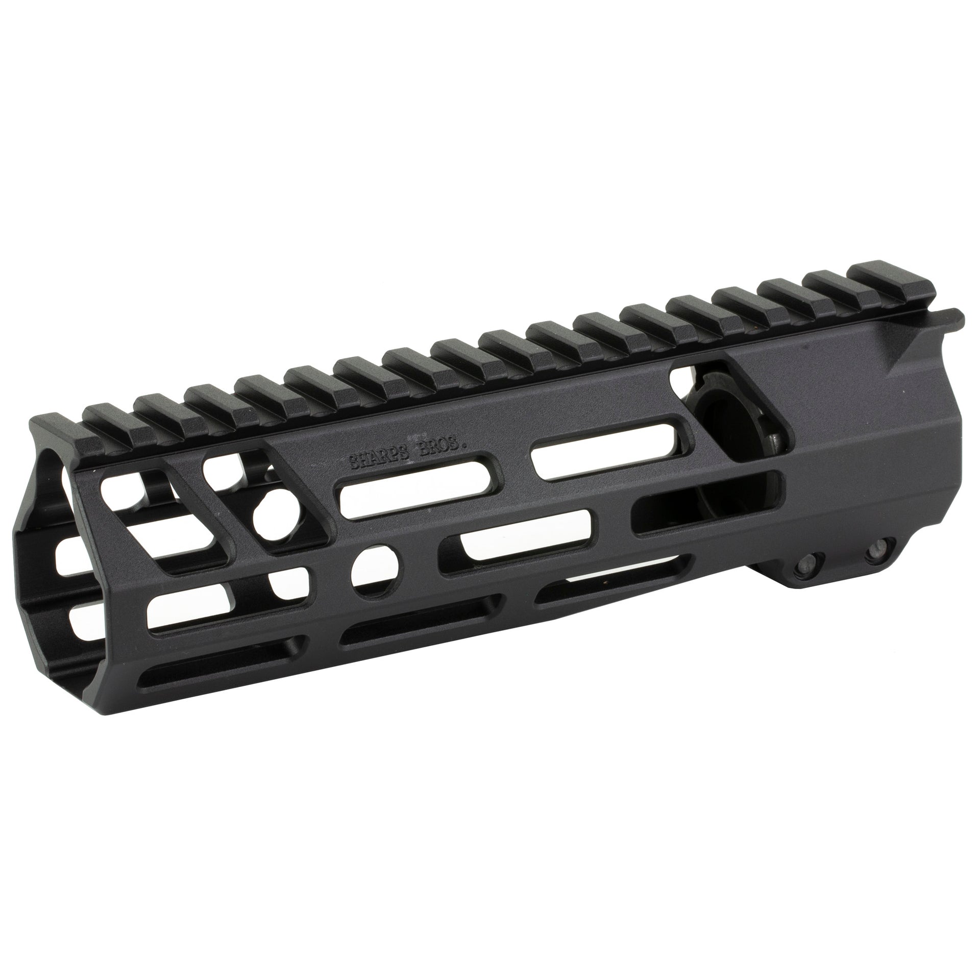 The Sharps Bros. Full Top Rail M-LOK handguard is a one-piece free floating unit that is an attractive, functional upgrade for your AR-15. It features a full length of Picatinny top rail for the addition of backup iron sights, and M-LOK accessory mounting slots on 7 flats along its length. It includes a barrel nut and hardware for installation.