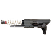 The Strike Industries PDW stock represents the pinnacle of ultra compact PDW systems. At the compressed position, the compact Strike PDW allows for effortless maneuverability particularly in close quarters and vehicular operations. With the press of a button, the rapid deployment system instantly springs to the extended position for greater shot stability. Previous PDW systems for ARs have been notorious for expensive proprietary systems, spotty reliability and poor ergonomics.