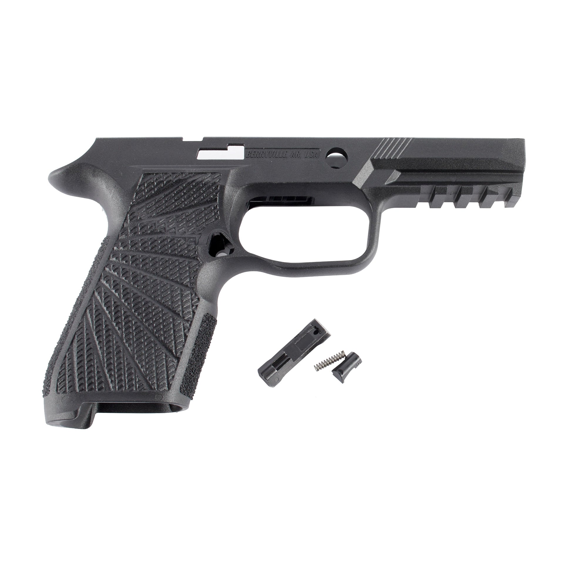 The impressive modular capability of the SIG-SAUER P320 is why it has become a favorite with practical shooters and its thoroughly tested design will be the official US Military sidearm for many years to come. Wilson Combat has now reengineered the P320 grip frame to optimize its practical shooting potential. This all new molded polymer grip module will enhance your grip and improve recoil control. Their significant improvements in shape, texture and overall ergonomics will give your P320 the superb feel of an expertly hand sculpted custom gun with a simple grip change. their fresh look at the P320 grip module incorporates the suggestions of tactical trainers, champion shooters and firearms experts into the final product that has a look that is unmistakably Wilson. They believe it is the most practical, comfortable and stylish P320 grip available and the ideal choice for practical shooting or defensive handgun use. Compatible with Compact slide and 15rd Compact magazine.
