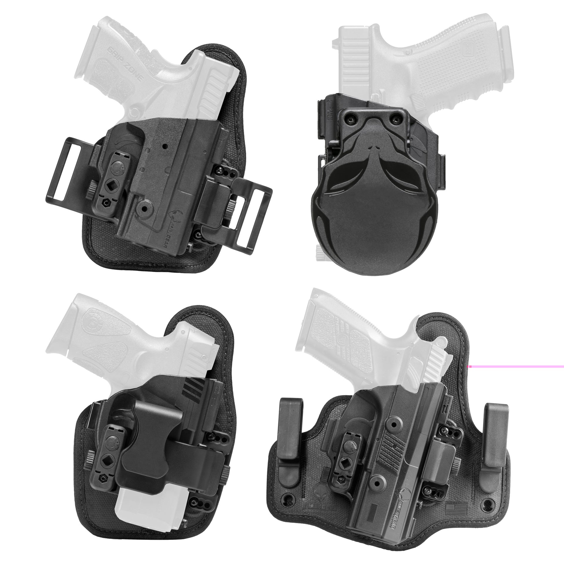 • IWB, Appendix carry, OWB belt slide, and OWB paddle