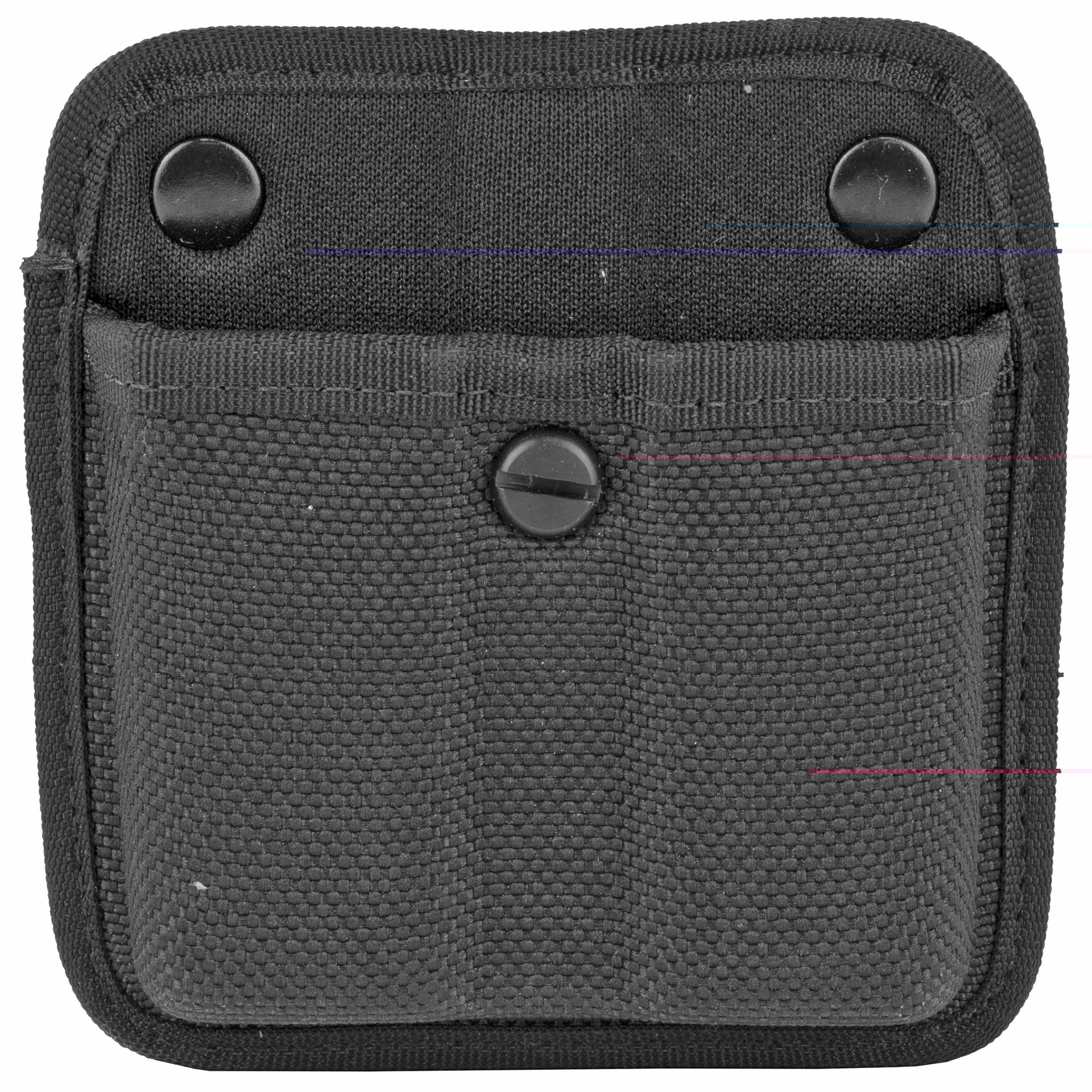 The Model 7320 AccuMold Triple Threat II Double Magazine Pouch is an open top design and features an injection molded belt loop for vertical or horizontal carry. Made with trilaminate construction with Coptex knit lining and fits 2.25 in. (58 mm) duty belts. Features an adjustable tension screw.