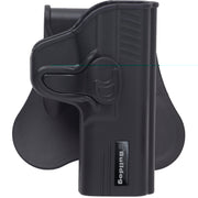 The Rapid Release Holster with Paddle is made of durable, high-tech polymer materials with gun specific design and is fully adjustable to multiple draw positions. The specially designed locking mechanism provides safe and secure Level II retention with one finger quick draw release.