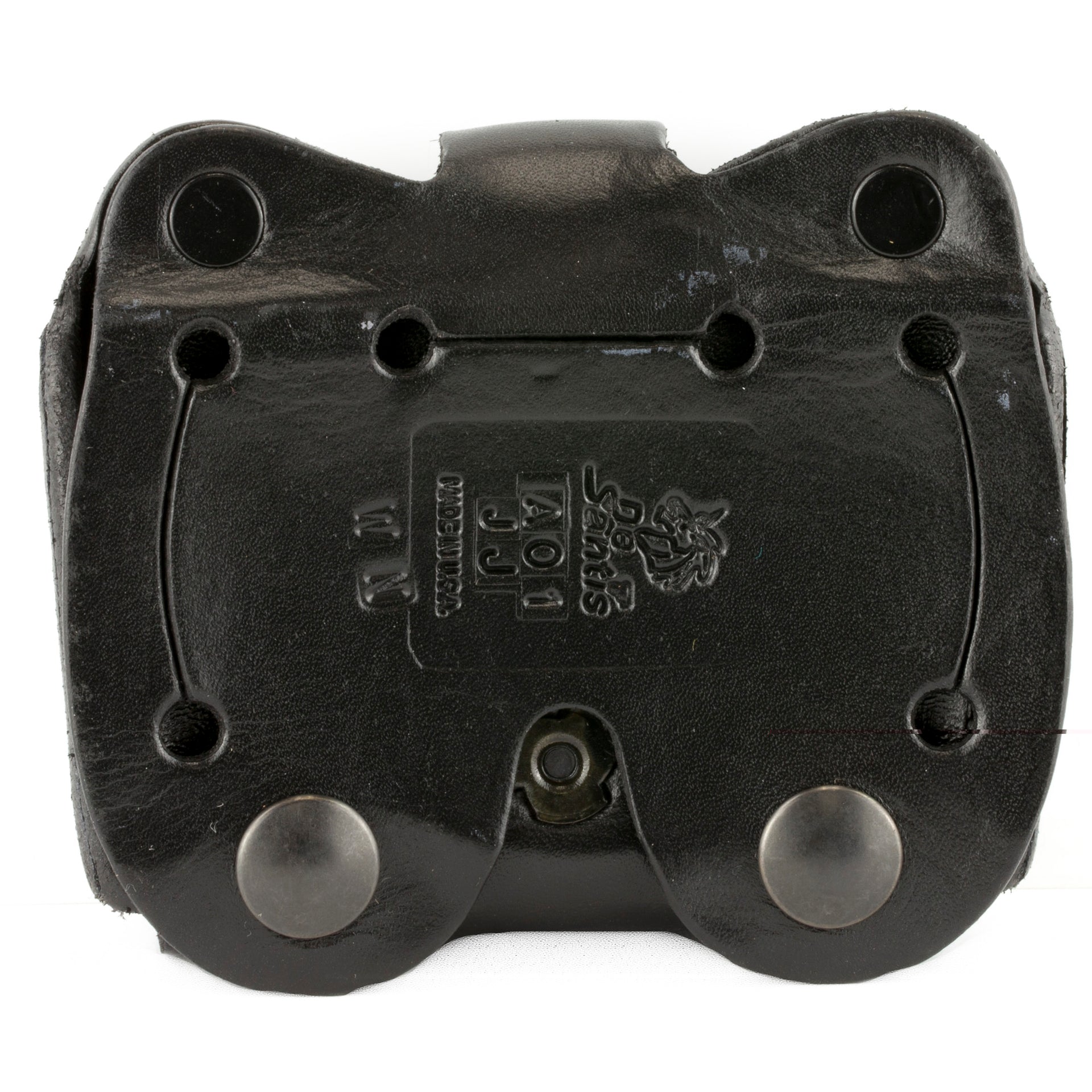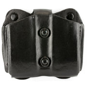 This double magazine pouch features a snap-to-the-belt design. May be carried horizontal or vertical. Available in black or tan unlined leather. Accommodates belts up to 1 3/4" wide. Fully adjustable dual tension device. **PLEASE NOTE: POUCH FOR SMALL CALIBER GUNS MAY NOT ONLY FIT BELTS UP TO 1 1/2" AND MAY ONLY HAVE THE VERTICAL BELT SLOTS.**