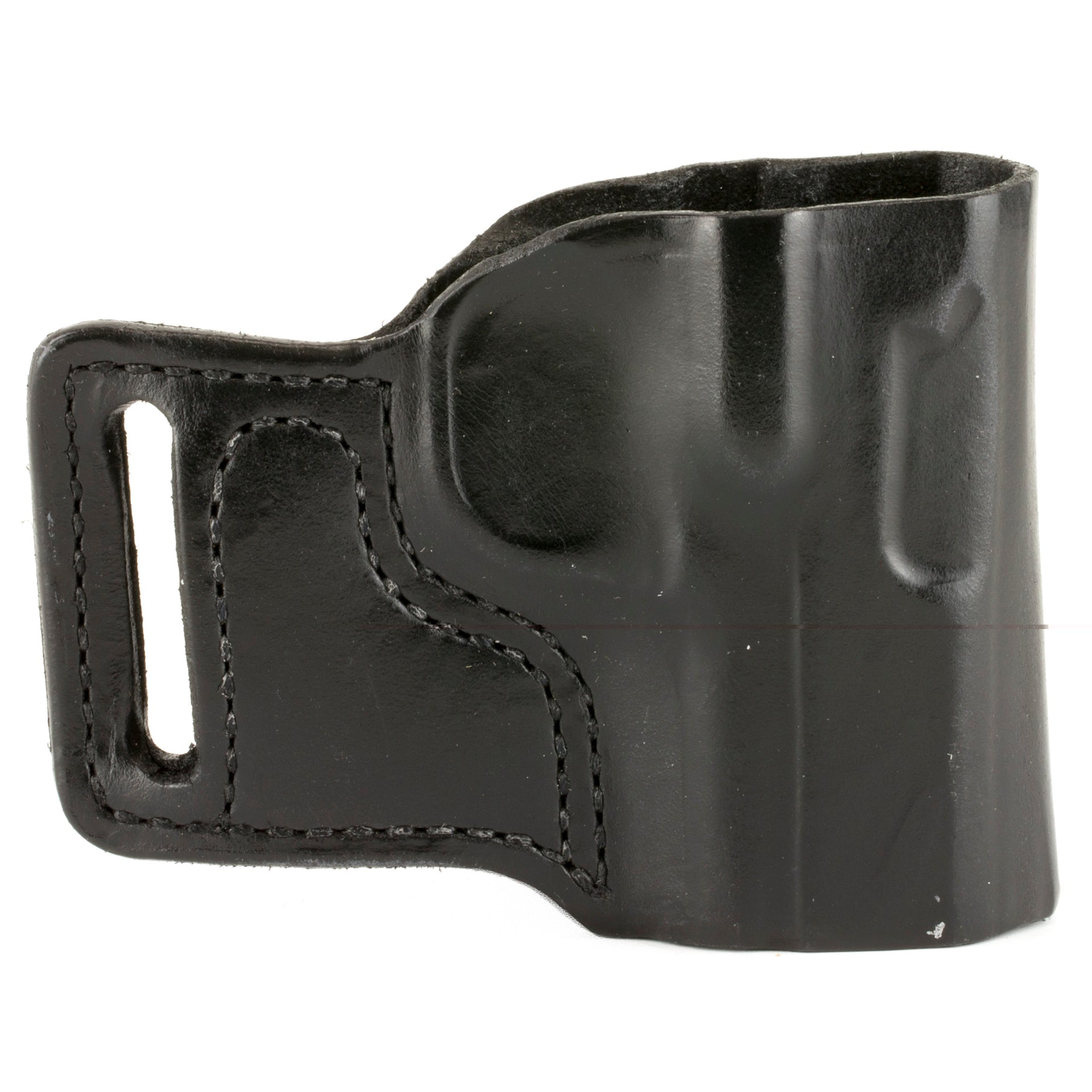 Their new E-Gat Slide is a basic neutral cant concealment OWB holster that works equally well on the strong side or cross draw. The E-Gat Slide works with both revolvers and autos and is offered only in BLACK-finished top grain leather. It is available for most medium & large autos and most small frame revolvers.