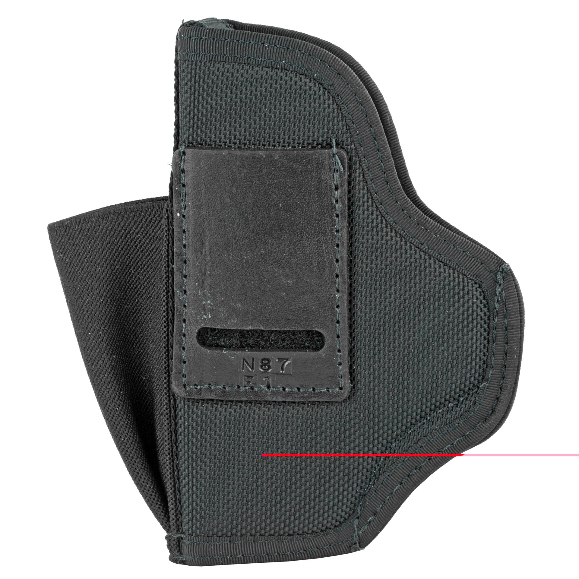 The N87 is made of premium padded ballistic nylon. The 1 3/4" sturdy, powder coated black spring clip keeps this beauty securely anchored to your belt. A spare magazine pouch is standard for the auto loader models, and they are ambidextrous. The clip may be removed and inserted on opposite side for left hand carry. Available in black. Optional thumb break is available separately, style N99.