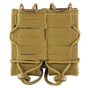 The Generation 2 Double Pistol TACO is sleeker, lighter, and more versatile than the original. Like the Original Double Pistol TACO, the Gen 2 Double Pistol TACO holds 2 pistol magazines, or similarly sized items such as flashlights or multitools. Contoured molded sides allow easy insertion of magazines. Integrated shock cord provides adjustable retention. Constructed from laser-cut nylon laminate wrapped over a woven thermoplastic core, Gen 2 TACOs weigh almost 20% less than the Originals. 1/2 inch interval MOLLE on the back of the TACO allows for both MOLLE and belt mounting options. With the addition of an HSG OTR Cover accessory, any Gen 2 TACO can be set up covered or open-top.