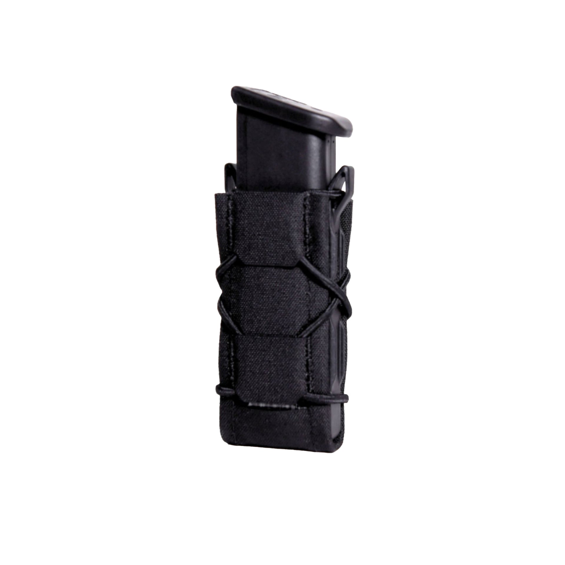 The Generation 2 Pistol TACO is sleeker, lighter, and more versatile than the original. Like the Original Pistol TACO, the Gen 2 Pistol TACO holds 1 pistol magazine, or similarly sized items. Contoured molded sides allow easy insertion of magazines. Integrated shock cord provides adjustable retention. Constructed from laser-cut nylon laminate wrapped over a woven thermoplastic core, Gen 2 TACOs weigh almost 20% less than the Originals. 1/2 inch interval MOLLE on the back of the TACO allows for both MOLLE and belt mounting options. With the addition of an HSG OTR Cover accessory, any Gen 2 TACO can be set up covered or open-top.