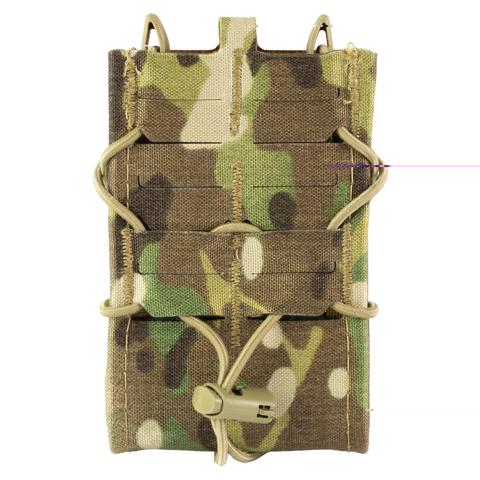 High Speed Gears Generation 2 Rifle TACO is sleeker, lighter, and more versatile than the original Rifle TACO. Like its predecessor, the Gen 2 Rifle TACO holds 1 rifle magazine, or similarly sized items. Contoured molded sides allow easy insertion and extraction of magazines. Integrated shock cord provides adjustable retention. Constructed from laser-cut nylon laminate wrapped over a woven thermoplastic core, the Gen 2 TACOs weigh almost 20% less than the originals. 1/2 inch interval MOLLE on the back of the TACO allows for both MOLLE and belt mounting options. With the addition of an HSG OTR (Over Top Retention) Cover accessory, any Gen 2 TACO can be set up covered or open-top, depending on your needs and mission.