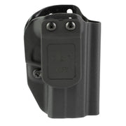 Mission First Tacticals Minimalist Holster is a low profile holster with all the performance and reliability of a full-size holster. For use Inside the Waistband (IWB) in the Appendix and 5:00 positions. Both right & left-hand positioning is accomplished with the removal of the claw and use of provided spacer. The claw, for right handed shooters, keeps the heel of the firearm pressed into your side minimizing its print. The famous audible click with added side retention makes each draw smooth and secure ideal for Concealed Carry. Each holster is handmade to precise tolerances for each model of handgun using the most advanced techniques and materials for an all-day comfortable carry. Holsters include a Tuckable Belt Clip that accommodates a 1-1 1/2" belt. Or remove the clip and claw and add a static-line tether keeping the trigger secure while using the firearm inside a night stand safe, purse, briefcase, vehicle console, etc.