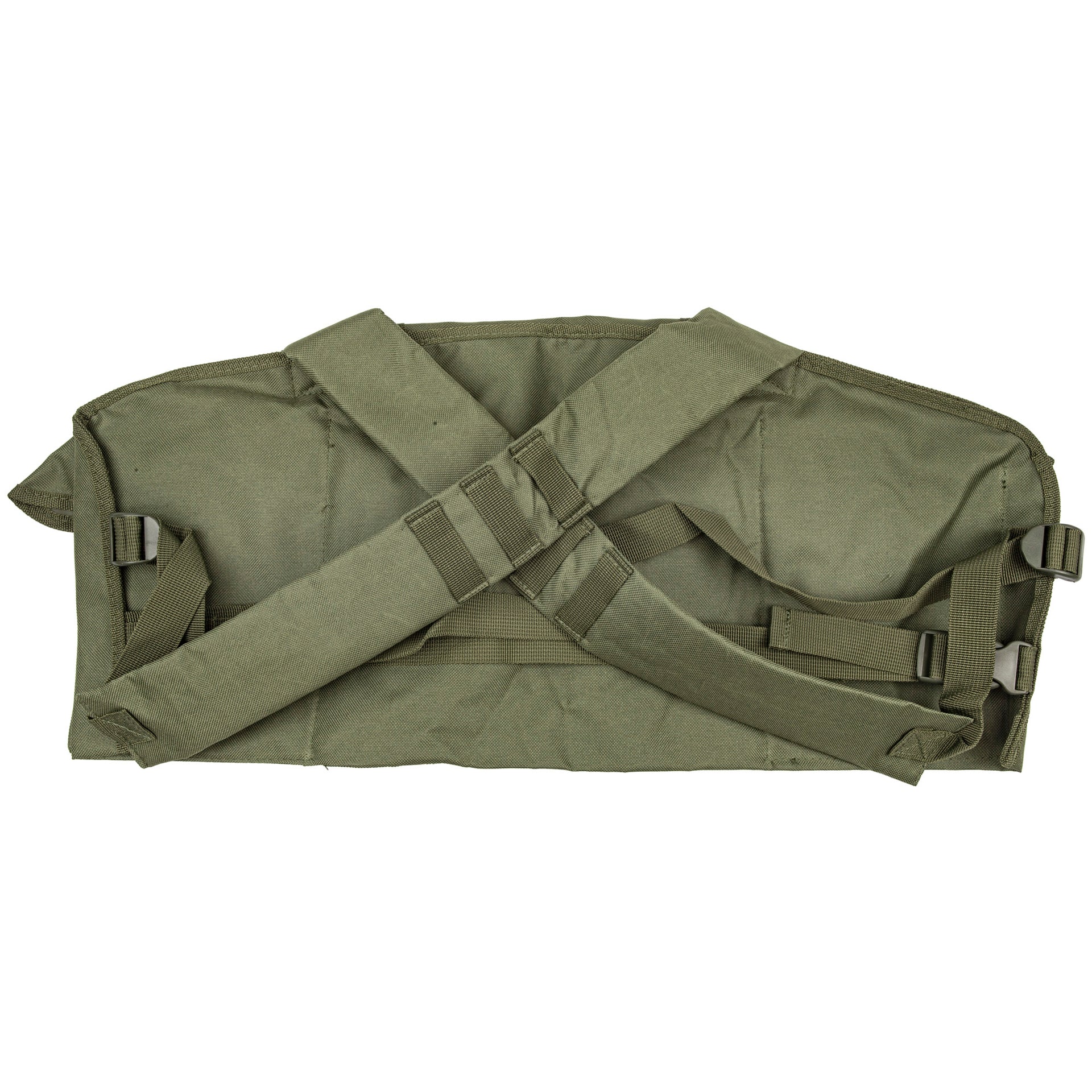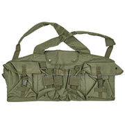 This AK Chest Rig includes three double AK Magazine pouches, with hook and loop fasteners and bungee cord retention straps, to carry up to six 30 round Magazines. There are two large Utility Pouches on each side of the chest rig with quick connect buckle flaps for storing additional ammo and gear and one central Chest compartment with button snaps for more storage.