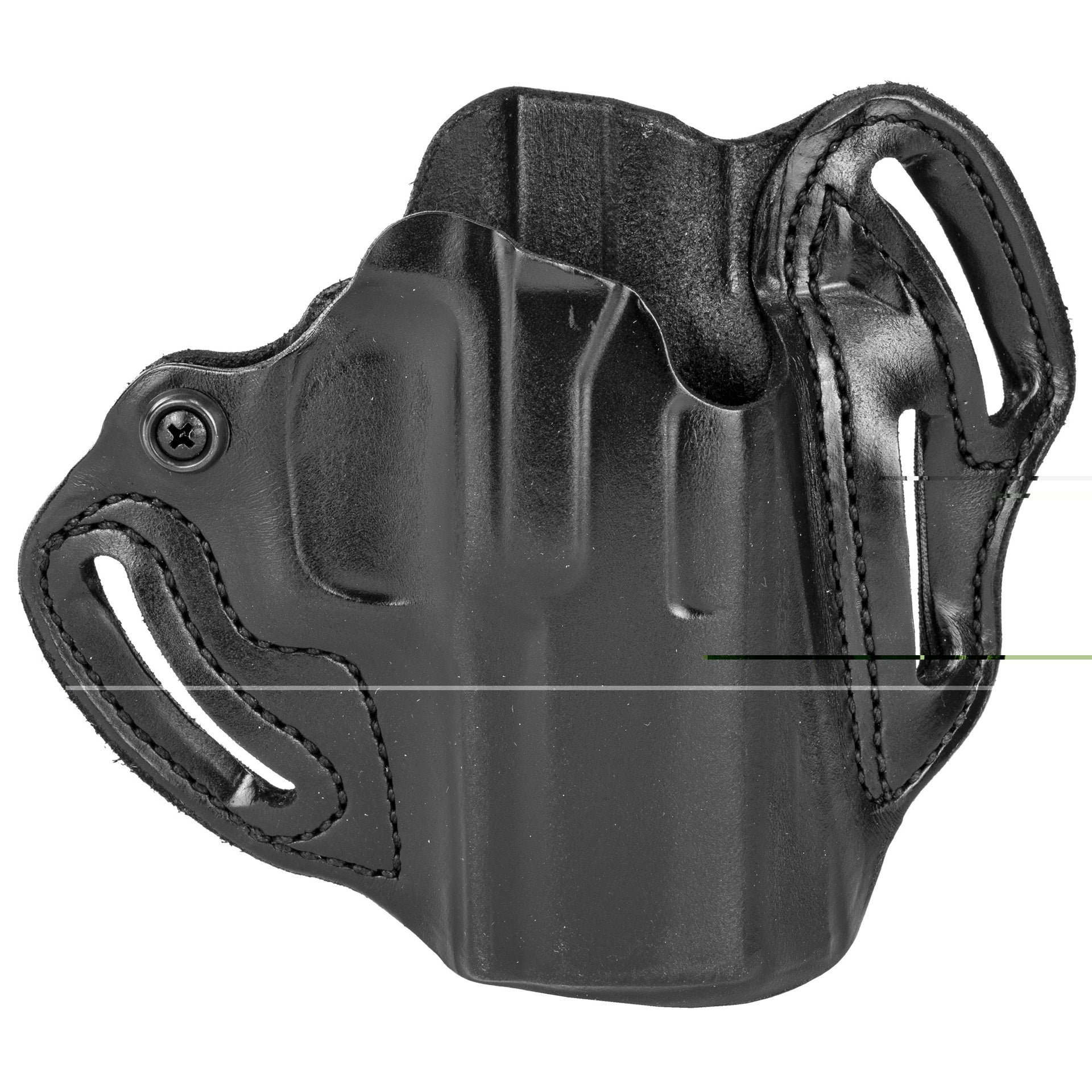 The Speed Scabbard(R) is designed to meet the needs of plainclothes professionals preferring a holster without a thumb break while still providing firearm retention. This is accomplished with precise molding and tension screw device on most models. Belt slots are 1 3/4" wide. Some models with two belt slots and without tension device.