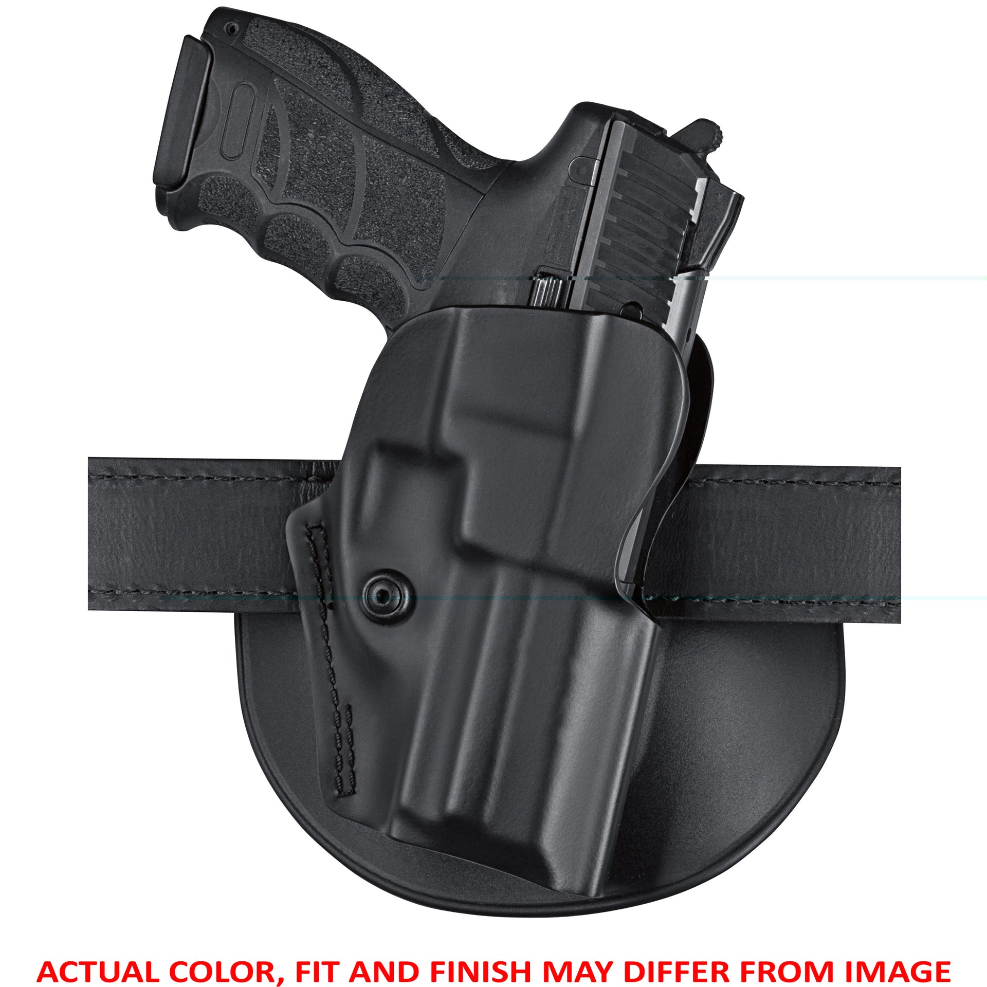 The Safariland Model 5198 holster is lightweight, with low-cut sides allowing for an easy draw, and an open-top designed for defensive pistol competition. The holster is also well suited for concealed carry due to its compact size. A trigger guard detent and adjustable tension device secure the gun in the holster during rigorous activity for reliable carry retention. Durable thermoformed SafariLaminate(TM) construction makes this holster tough enough for constant wear, and the STX finish keeps it looking good through years of use. The 5198 comes with both injection-molded paddle and belt loop, so you can attach and adjust carry for comfort and to match your needs. The Model 5198 open-top concealment holster is IDPA and USPSA approved.
