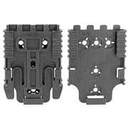 The QUICK-KIT includes the QLS 19 Locking Fork and QLS 22 or QLS 22L (Extra Locking Feature) Receiver Plate components. Constructed of injection molded nylon, the receiver plate can be attached at different angles according to user preference. The QLS (Quick Locking System) allows for quick transfer of gear between attachment points such as a belt loop, tactical leg shroud or other stable platform. The QLS fork and plate combination passes the Level I Retention(TM) pull test. Allows users to rearrange gear quickly and easily without the use of tools. Hardware and Allen wrench included.