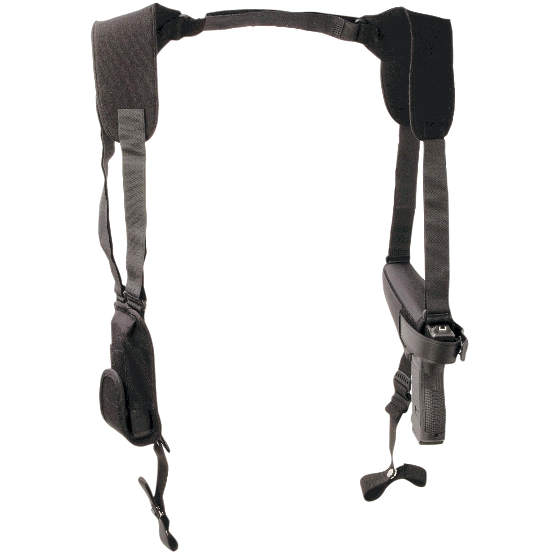 - Offside tie-down has single mag case for autos or single speedloader case for revolvers