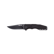 For their first Fusion tactical folding knife SOG wanted something that was progressive, and performance driven. The Salute is an acknowledgment that great design can still be affordable with a little perseverance. Take the machined G10 handles in combination with scalloped full-length steel liners for a whole new look. Add a big lockback, smooth as silk operation, and a proven Bowie style blade. For good measure, throw in their patent-pending new invention- a movable thumb stud so you can tailor the position to your own hands. they didnt forget to incorporate their trademark low carry bayonet clip either. The Salute pocket knife lives up to its name and is worthy of carry on any front in the world... including your back yard.