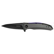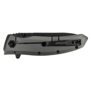 The Grids blade is a modified drop-point, but cut so that it almost resembles a tanto. This provides a strong tip for practicalities like piercing, yet the blade also has enough belly to offer excellent slicing capabilities. Quality 8Cr13MoV blade steel means long-lasting edge retention, strength, and hardness. Black-oxide coating gives the blade a non-reflective, matte finish and enhances corrosion resistance. The handle is pure steel-with a handsome grey titanium carbo-nitride coating. A sturdy frame lock holds the blade securely open during use. You can access the blade quickly and easily thanks to Kershaws SpeedSafe assisted opening. Just pull back on the built-in flipper or push out on the thumbstud. The Grids pocketclip is reversible for convenient left- or right-handed carry.