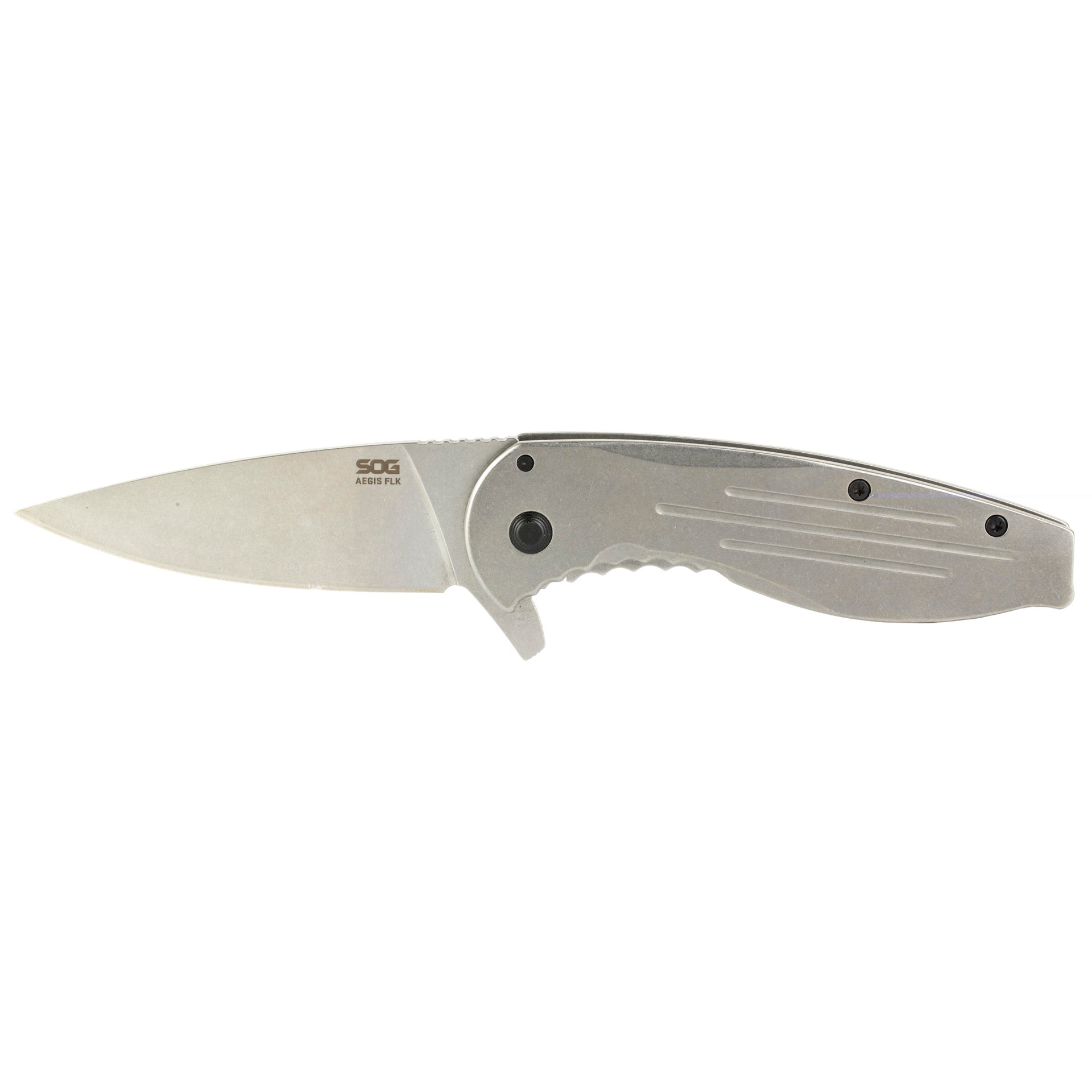 Sometimes a simple, honest pocket knife with a SOG Sharp blade is just the trick. The Aegis FLK brings just that, a no-nonsense all-metal construction frame-lock featuring a kick deployment built on the proven SOG Aegis platform. Aegis FLK is the perfect entry-level folding knife built to last. Featuring durable, all-metal construction, deep-carry pocket clip, and a kick for smooth and fast opening.