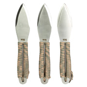The Fling knives are styled after traditional throwing knives and perfect for backyard competitions. Each knife handle is wrapped with 7 feet of paracord, giving you a total of 21 feet, prefect for those unexpected situations. Also included with the three knives is a ballistic nylon carry sheath. See who can hit the bulls eye first!