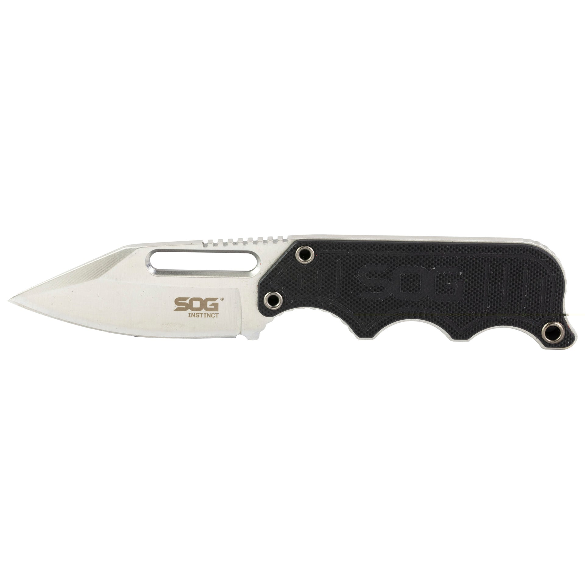 Theres a feeling and intuition that comes when youre in situations that demand your full attention. The Instinct is a compact, wearable fixed blade knife that is made just for those times. Available in two sizes and two handle types, it is suitable for many people. The Instinct offers multiply carry options. It can worn around the neck with a lanyard. It can be clipped to a belt or boot with the multi-angle adjustable clip. It can also be secured to a vest or bag with its many attachment points. When your first instinct is to go for a blade, consider the SOG Instinct.