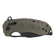 With a powerful styling that harkens to its Japanese DNA, the muscular Kiku XR pocket knife makes a subtle statement of strength wherever its carried. The high-utility modified tanto blade cuts under virtually every condition, and the linen micarta handle provides for a sure, secure grip. Expertly blending form and function, the Kiku XR is a rugged solution for situations that require a quick opening, super sharp folding knife. The original amd most popular of their Kiku knives assortment