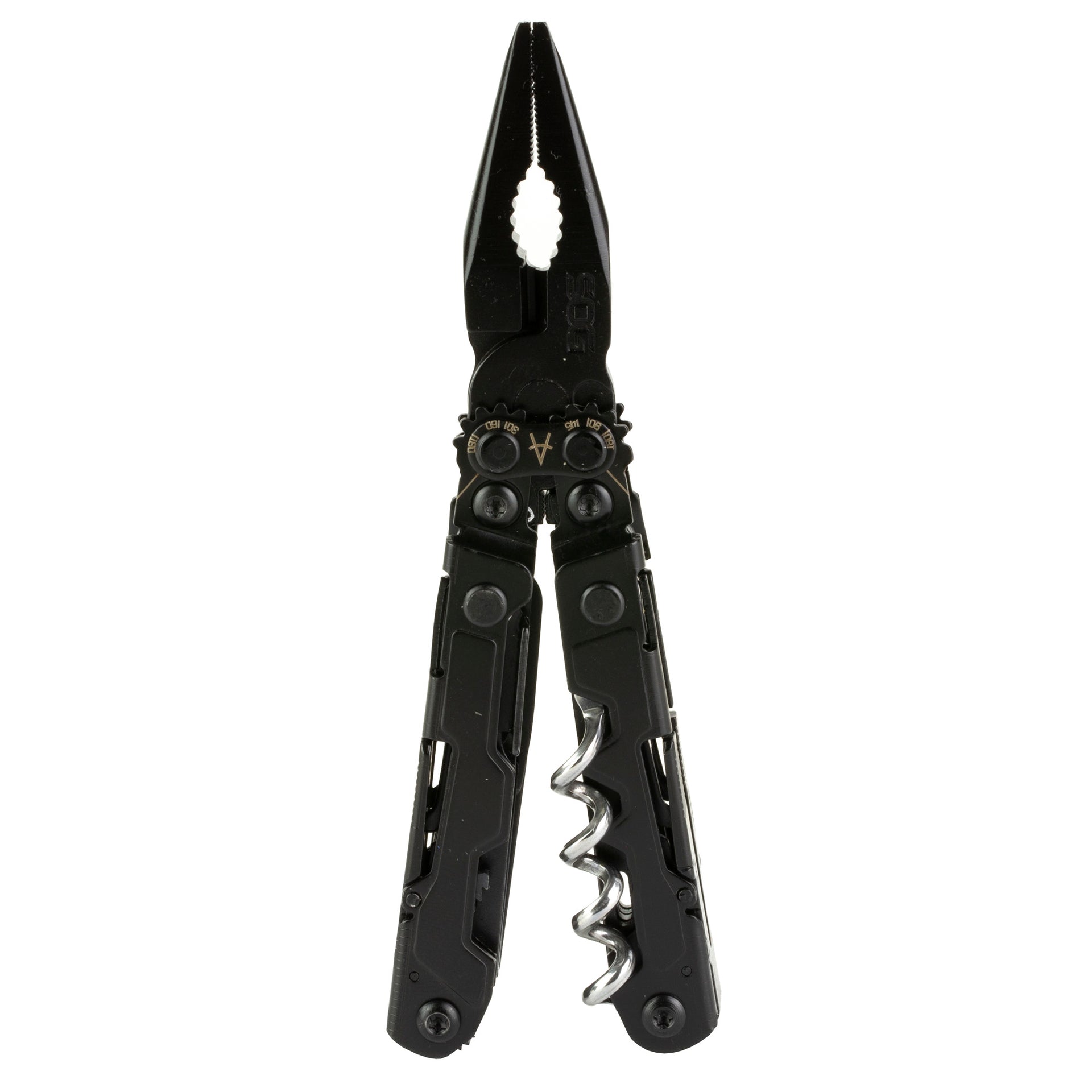 The PowerLitre is a mini-multi tool with that delivers full-sized utility, including the first SOG multi-tool to include a corkscrew. The Litre comes equipped with a magnetic hex bit holder, and of course it features SOGs Compound Leverage that provides smooth open and close and increased gripping power, utilized both in the pliers and corkscrew. At only 5" long and a lightweight 4.6 ounces, the PowerLitre is a multi-tool thats great in your pocket, your pack, on the tool bench, or around the house. Now available in a black coating.