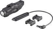 Other Features: Includes rail locating keys, 1100 lumens, 640-660 nm red laser, uses 2-cr123a lithium battery (included) remote pressure switch, safe off door switch with mounting clips, user enabled strobe function