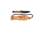 Rothco’s Pilot's Survival Knife is a reliable tool built for outdoor enthusiasts and survivalists. The 5-inch Parkerized blade is designed to resist corrosion, ensuring long-lasting durability in harsh conditions. Its serrated top edge and blood groove add to the knife’s versatile functionality, allowing it to handle cutting tasks with ease. The comfortable leather handle provides a secure grip, making it an essential tool for camping, hiking, or survival situations. The knife comes with a high-quality leather sheath that includes a leg strap for convenient carrying, as well as a sharpening stone to keep your blade in peak condition. Compact and rugged, this survival knife is ideal for those who need a dependable tool for the great outdoors. Note: This item is restricted for export and may not be available for sale in some countries outside the U.S.