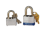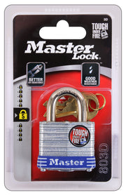 This durable laminated steel padlock is designed for maximum security, featuring a wide, reinforced body for superior strength. The hardened steel shackle offers extra cut resistance, while the 4-pin tumbler cylinder helps prevent picking. Dual locking levers provide added protection against prying, and each lock is keyed differently for unique, non-rekeyable security. Ideal for protecting your valuables with reliable, high-performance design. Great for lockers, gym, or securing personal belongings.