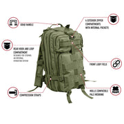 The Medium Transport Pack is your ultimate solution for tactical storage and outdoor readiness. With a 25L capacity, multiple compartments, and rugged military-grade construction, it’s built to withstand the toughest conditions. Whether you’re heading to the range, trekking through the wilderness, or preparing for emergencies, this versatile backpack has you covered with reliable organization and comfort. The military backpack is great for going to the range, trekking out into the great outdoors, or stocking up as a bug out bag. Rugged Construction: Engineered with 600D polyester and polypropylene webbing, these medium transport packs are built tough, withstanding strenuous activities while in the field. In addition, the storage compartments feature heavy-duty zippers and water-repellent lining. Ready for Action: The survival bag comes equipped with sternum straps and waist strap for weight distribution when carrying heavy loads. The compression straps ensure your gear stays secure. The get home bag features quick-release buckles for rapid and easy on/off. Versatile Carry Options: These tactical bags feature breathable mesh padding on the back and adjustable shoulder straps for a more comfortable carry. The top grab handle provides quick and easy handling for when you are on the go. Utility at the Forefront: These MOLLE compatible backpacks include d-rings and PALS webbing on the outside for mounting and securing additional tactical gear. The large capacity backpack features a rear hook & loop compartment designed for storing a hydration system (not included).