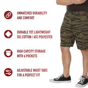 Rothco’s Tactical Camo BDU Shorts are just what you need for the trail, range, and casual style. Constructed from a cotton / polyester fabric blend, our military shorts are built for unparalleled performance, comfort, and convenience while you are on the field. These cargo shorts are not afraid to get down and dirty, standing up during field missions, tactical operations, and law enforcement duties. High-Capacity Storage: The camouflage hiking shorts provide functional utility through 2 large cargo pockets, 2 front slash pockets, and 2 button-down back pockets for storing tactical gear and everyday essentials like your phone, wallet, keys, or multi-tool. Comfortable Button Fly: These tactical cargo shorts come equipped with a button fly for easy on and off, along for a secure fit during outdoor adventures. Perfect Fit: The adjustable waist tabs are designed to give you the perfect, custom fit, every time and anywhere. Upgrade your tactical loadout with these camo BDU cargo shorts. Action Ready: Initially designed for military personnel and tactical professionals, these adaptable and reliable BDU uniform shorts are great for backpacking, camping, hiking, hunting, fishing, working, public safety, skateboarding, everyday wear, and more. We’ve Got You Covered: Complete your look with one of our many T-Shirts from solid color to camouflage pattens and graphic designs. Go ahead and throw on one our Low Profile Caps or Boonie Hats.