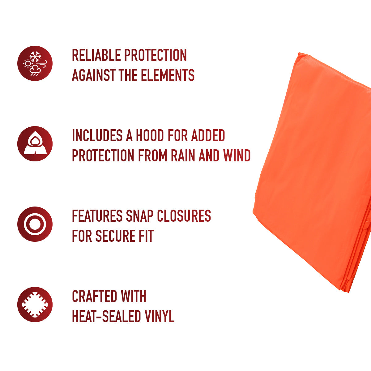 Stay dry during rainy days with Rothco's heat-sealed vinyl poncho. Featuring a hood, snap closure, and a convenient carry pouch, this portable rain poncho offers reliable protection from wet weather and is compact for storage.